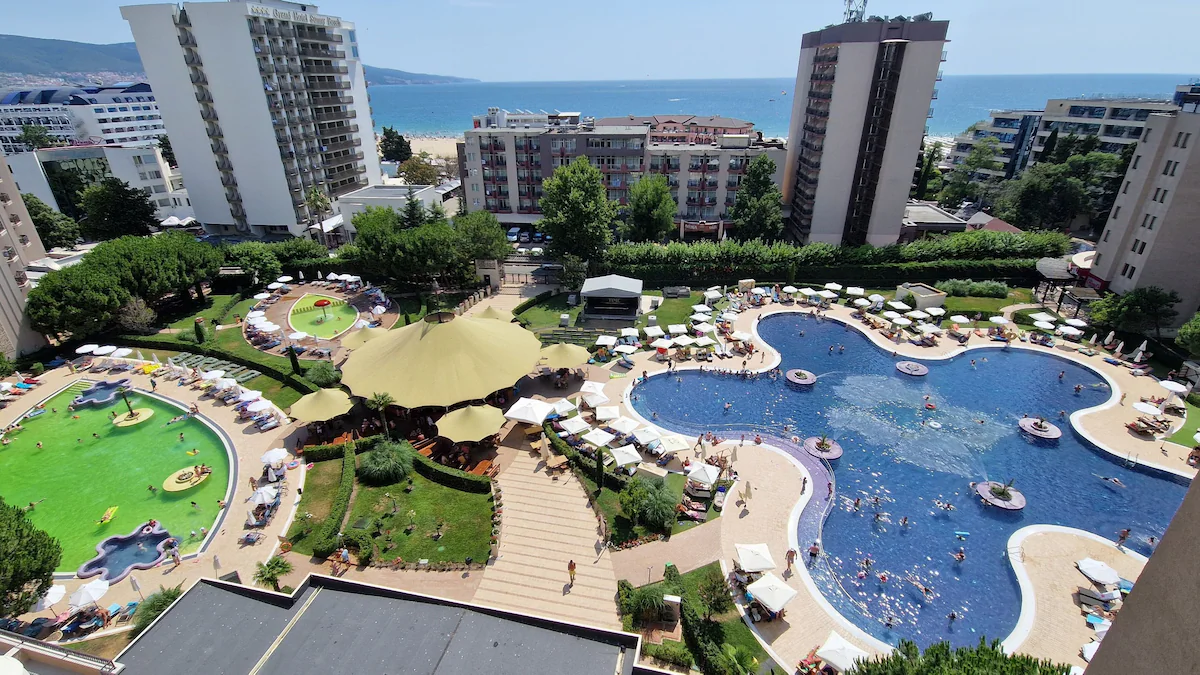 Na území komplexu se nachází: 3 venkovní bazény, 1 krytý bazén, bar a restaurace u bazénu, prostorná odpočinková zóna s lehátky, 3 restaurace, venkovní hřiště pro děti a dětský pokoj, fitness, konferenční místnost s kapacitou až 180 osob, noční bar, různé druhy lázeňských procedur, čistírna, kryté dvoupatrové parkoviště, 24hodinová ostraha, údržba území správcovskou společností.
