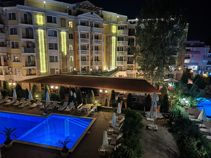 Комплекс Royal Sun разполага с: охрана, видеонаблюдение, ограничен достъп, техническа поддръжка , басейни с шезлонги около него ,ресторант,бар и СПA център.